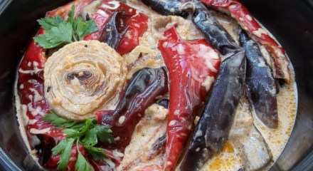 Vegetable dishes, served cold, are popular in Georgia. In this family recipe we show how to prepare a delicious dish of eggplant, peppers and onions in a spicy mayonnaise sauce. Ingredients: 2 eggplants, 2 red peppers, 1 large white onion, 1 level tsp of hot red pepper, 1 level tsp of dried coriander, 1 level … Continue reading