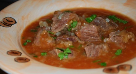 Kharsho (Georgian: ხარშო), also known as Kharcho, is a traditional Georgian dish, usually made with beef or chicken but can also be made with other meats. It can be made with walnuts and with or without rice. In this recipe we show how to make Kharsho with beef and rice. Ingredients: 700 grams of beef, 100 grams of … Continue reading