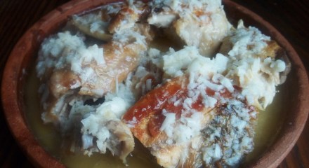Shkmeruli (Georgian: შქმერული) is a chicken dish from the Racha region of Georgia. A young chicken is usually used for this recipe and is cooked in milk and garlic. Sour cream can be used instead of milk. Ingredients: 1 whole young chicken, 50 grams of garlic, 100 ml of milk (80 grams of sour cream … Continue reading