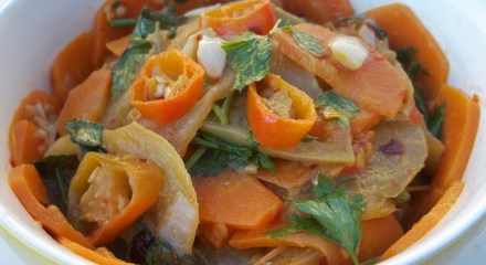 Green tomatoes are popular in Georgian cuisine, especially when marinated and also in nut recipes. In this family recipe we show how to make fried green tomatoes with onions and carrots. Ingredients: 1 kilo of green tomatoes, 2 large carrots, 3 onions, 4 cloves of garlic, 1 tbs of coarse, hot red pepper, 6 tbs of … Continue reading