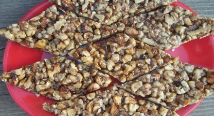 Gozinaki (Georgian: გოზინაყი) is a traditional Georgian confection made of caramelized nuts fried in honey and usually eaten at New Year and Christmas. In this recipe we show how to make Gozinaki with walnuts. Ingredients: 1 kilo of walnuts, 10 heaped tbs of honey and 2 tbs of sugar. Preparation: Shell the walnuts. Add to a hot … Continue reading